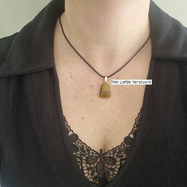 Edelsteen Tijgeroog met leren ketting